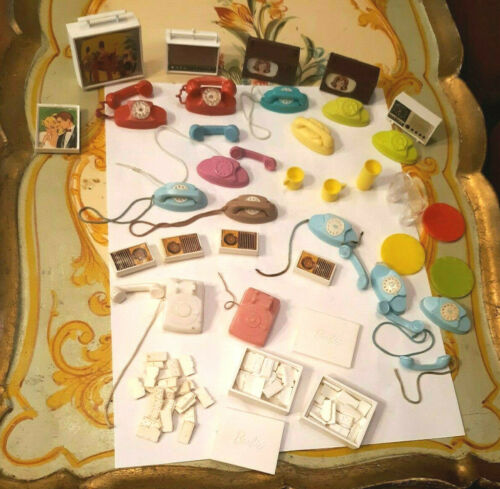 LG LOT VINTAGE BARBIE GO TOGETHER FURNITURE TV RADIOS TELEPHONES CUPS TRAYS ++