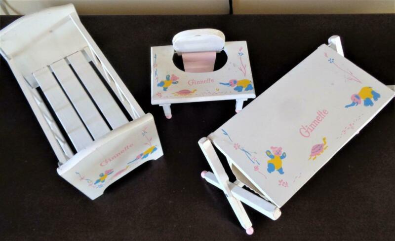 3 Pc. Vintage 1950s Vogue Ginnette Doll Furniture TENDER, CRIB & BATHINETTE