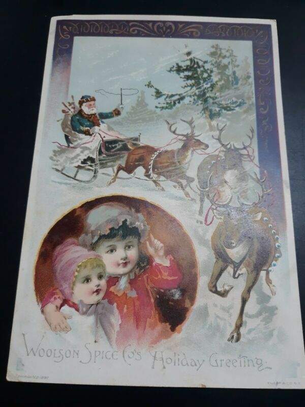 Title (ebay affiliate link): 1890 Lion Coffee Large Santa Claus Reindeer Woolson Spice Co Trade Card