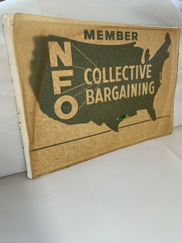 Vintage NFO Member Collective Bargaining Metal Embossed Sign 20x14 *NOS*