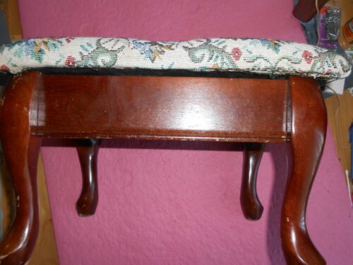 Vintage Needlepoint Foot Stool Wood