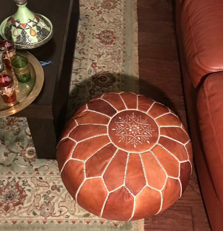 Title (ebay affiliate link): Genuine Handmade Moroccan Leather Pouf Pouffe Ottoman Footstool Rustic Footrest