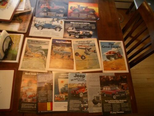 Great vintage Jeep Ad Lot (14) Print Ads - Laredo, Renegade, Cherokee, CJ-5,