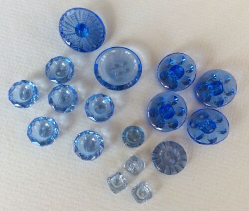 17 Vintage Blue Depression Glass Buttons