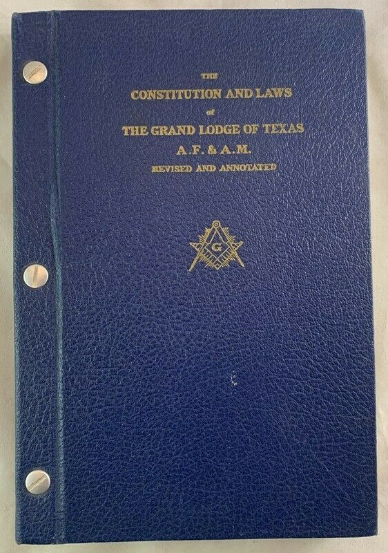 Title (ebay affiliate link): 1959 Masonic Book The Constitution and Laws of Grand Lodge of Texas Freemasonry