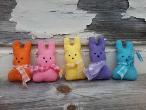 Title (ebay affiliate link): Primitive Easter Colorful Peeps Bunnies Ornies Bowl Fillers Decor Set Of 5