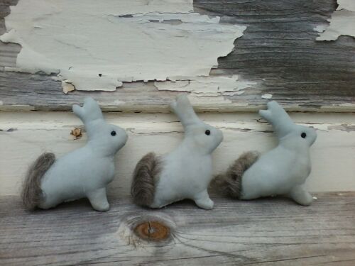 Primitive Easter Gray Bunny Rabbit Ornies Bowl Fillers Decor Set Of 3