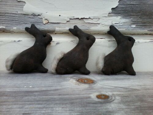 Primitive Easter Black Bunny Rabbit Ornies Bowl Fillers Decor Set Of 3