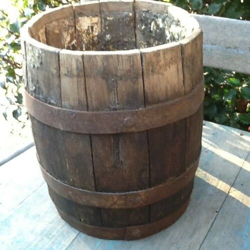 Title (ebay affiliate link): Early Primitive Wooden Paint Bucket Small Barrel Solid 7.5" High