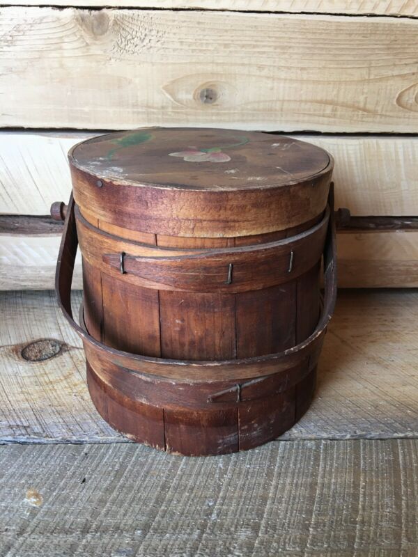 Title (ebay affiliate link): Sm Vintage Wooden Firkin with Lid- Painted Flower - 6 1/2" Tall