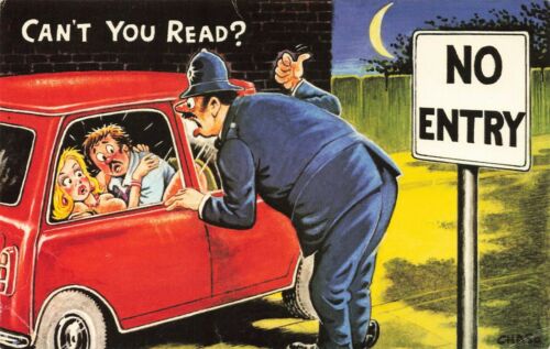 Bamforth Comic Postcard: Big Boobs, Police, Policeman & Mini Car Theme