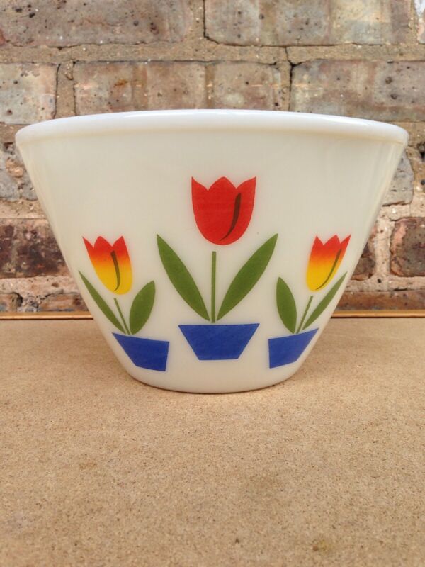 VINTAGE FIRE KING 9 1/2" TULIP MILK GLASS MIXING BOWL