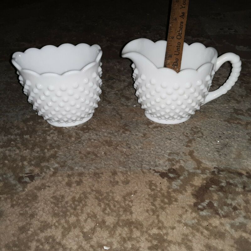 Title (ebay affiliate link): Vintage FENTON WHITE MILK GLASS HOBNAIL creamer & sugar 2 PIECE set large