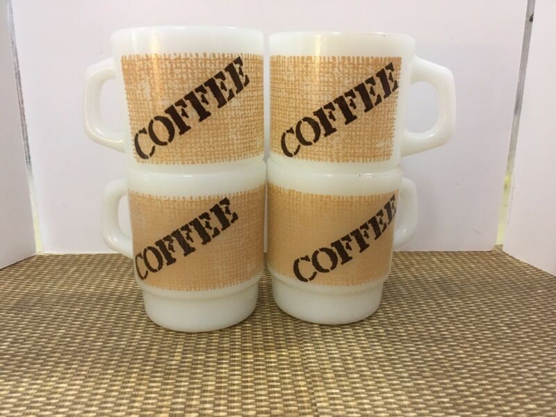 Title (ebay affiliate link): Vintage Anchor Hocking Milk Glass Coffee Cup Burlap Mug Stackable D Handle