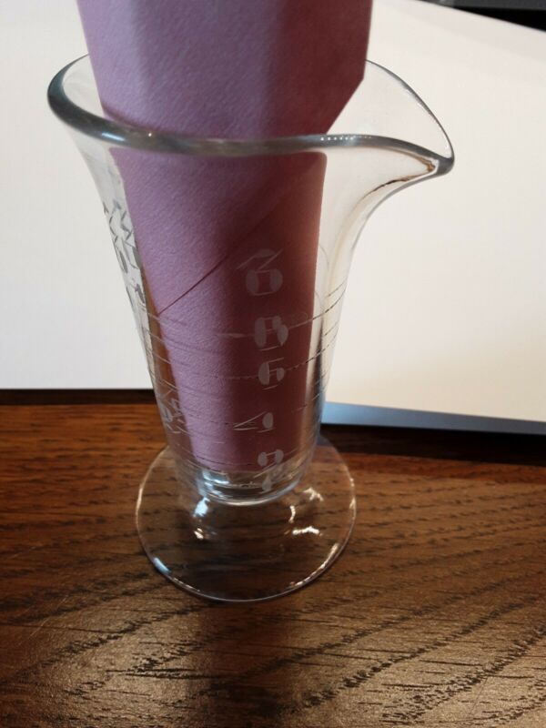 Title (ebay affiliate link): Vintage 1 Oz 8 Dram Pharmacy Lab Beaker Footed Etched Glass