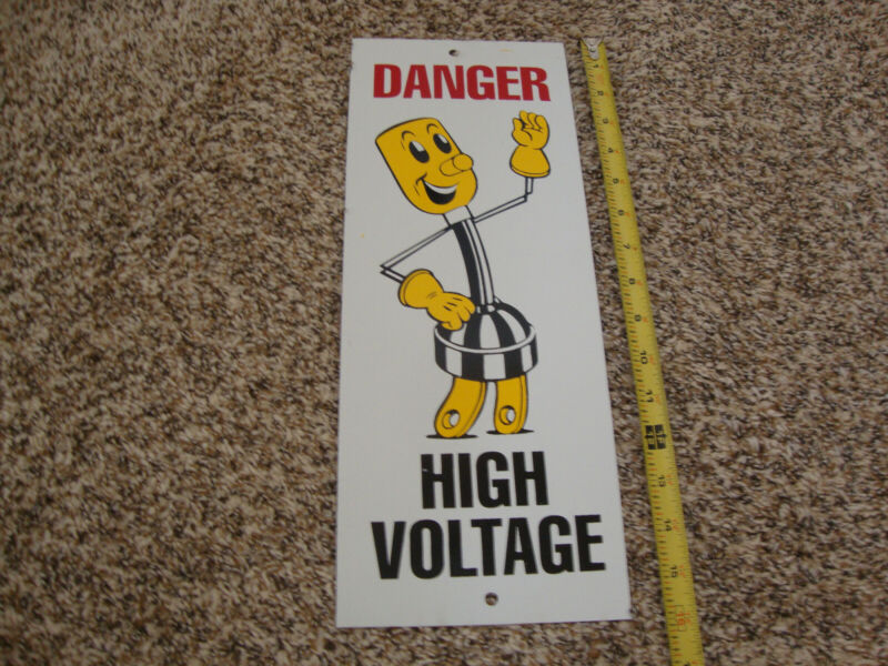 1970s Vintage Danger High Voltage Metal Sign Willie Wirehand Kilowatt Willy Farm