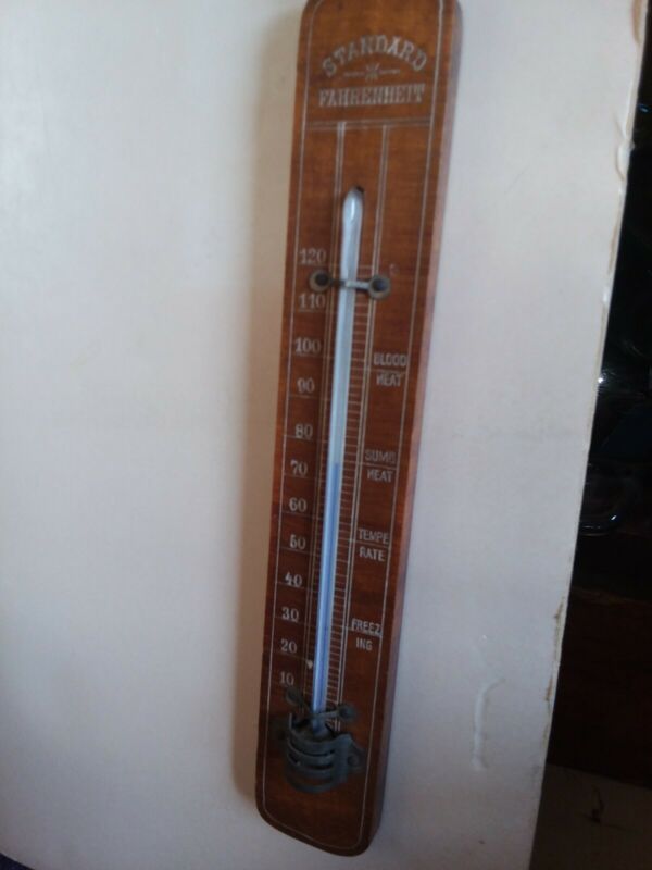Antique Wood Hanging Thermometer Germany Blue Fluid