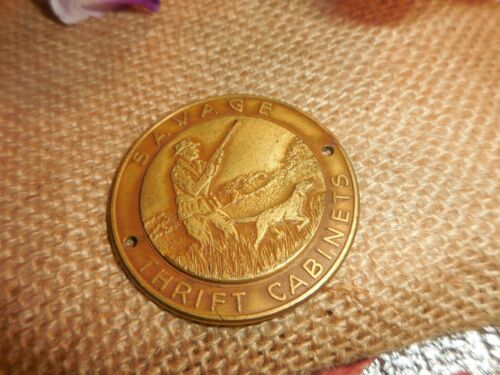 Vintage SAVAGE THRIFT CABINETS Medallion ~ A.E. Company Utica N.Y. ~ Hunter Dog