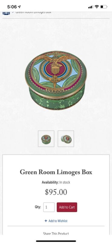 Title (ebay affiliate link): The White House Historical Society Limoges Box Green Room Porcelain
