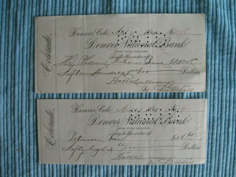 Title (ebay affiliate link): Two 1895 Charles Hall & Dennis Sullivan Bank Checks Goldfield Arizona