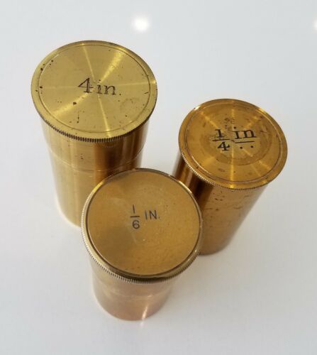 Title (ebay affiliate link): Antique-Vintage Empty Brass Microscope Objective Canisters (3)