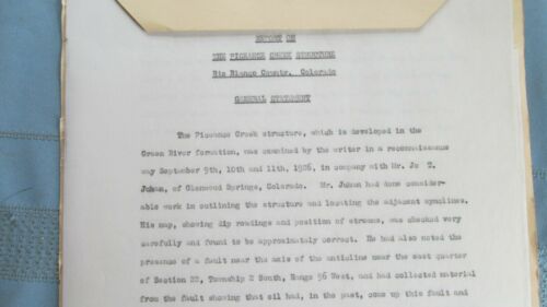 Title (ebay affiliate link): 1926 Rio Blanco County Colorado Piceance Creek Structure Geology Report & Map
