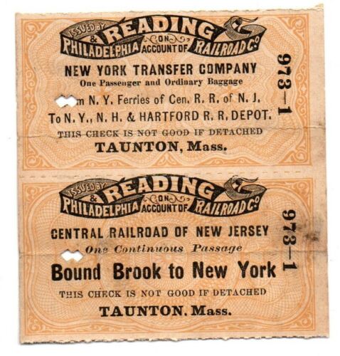 Title (ebay affiliate link): 1800s~READING Railroad 2 PASS~TAUNTON~NY FERRIES~BOUND BROOK~NY,NH&HARTFORD RR