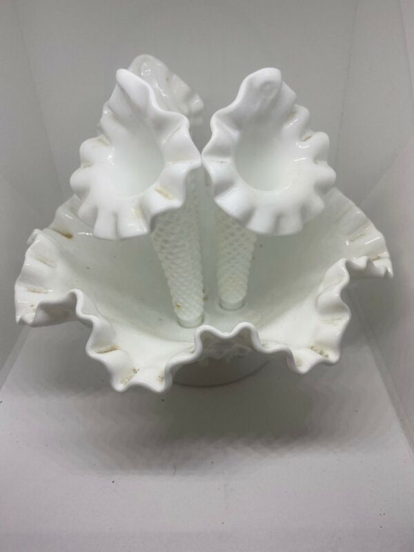 White Milk Glass English Hobnail Style Epergne