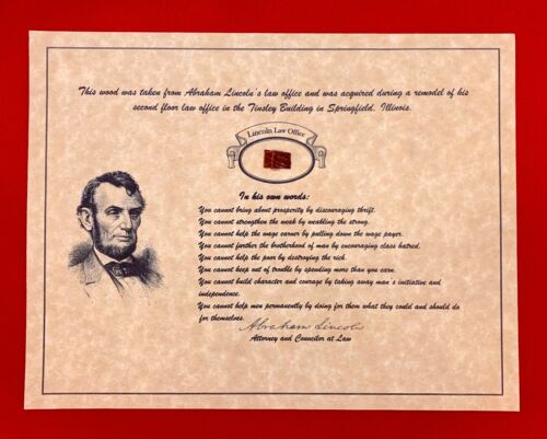 Title (ebay affiliate link): Wood from Abraham Lincoln''s Springfield Law Office, Certificate of Authenticity