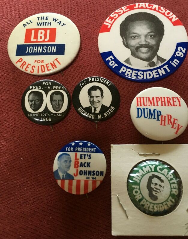 Title (ebay affiliate link): VINTAGE POLITICAL BUTTONS PINBACKS LOT OF 7:FOR PRESIDENT NIXON LBJ HUMPHREY ETC
