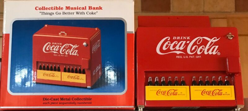 Title (ebay affiliate link): Coca-Cola Bank Musical Die Cast Metal 1997 Cooler Coke Machine Mint In Box