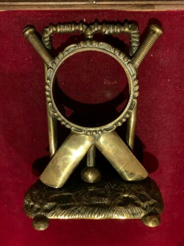 Title (ebay affiliate link): ANTIQUE CRICKET BRASS FRAME. BATS, WICKET & BALL . ONCE HELD A CLOCK MOVEMENT .