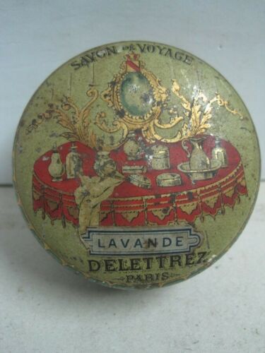 Antique Tin box Delettrez travel soap Paris Made in France