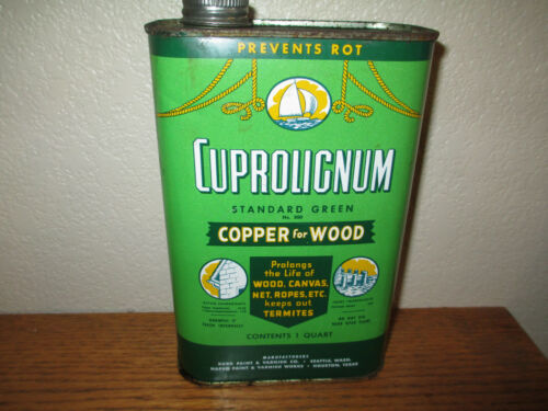 Title (ebay affiliate link): Vintage Advertising Cuprolignum Copper Wood Green Can Termite Poison tin Empty