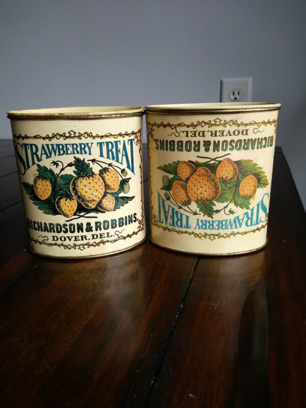 Title (ebay affiliate link): Richardson & Robbins (2) Dover, Del. Strawberry Treat Tins Upside Down Graphics