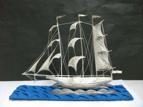 Sailboat of metal wire workmanship. FILIGREE SHIP