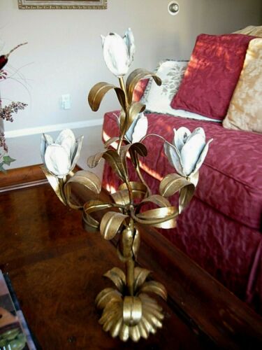 Title (ebay affiliate link): Vintage Italian Tole Candle Holder Guilt Metal Flowers Tulips Toleware