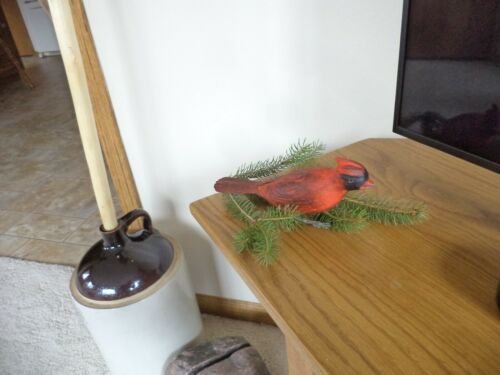 Wooden Male Cardinal Bird Hand Carved Bass Wood Figure Sculpture,cabin decor