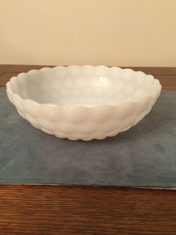 Vintage Anchor Hocking Bubble White Milk Glass Hobnail Fruit bowl Gift Retro