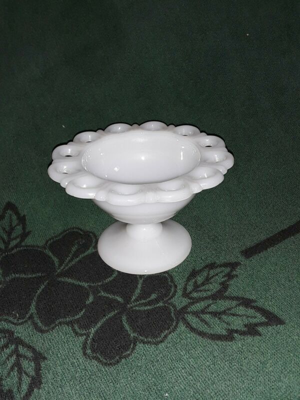 Title (ebay affiliate link): Vintage Opaque White Milk Glass Compote With Lace Rim 3.5 Tall 5"Diameter
