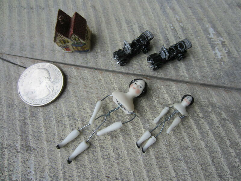 Title (ebay affiliate link): Vintage Dollhouse Miniature LOT Porcelain Doll Form Metal Toy Car Village House