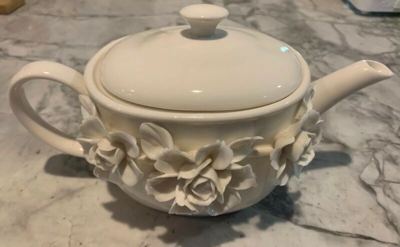 Title (ebay affiliate link): I. Godinger & Co.Teapot Porcelain with Capodimonte Flowers Roses Soft Ivory
