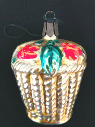 Title (ebay affiliate link): ANTIQUE VINTAGE RUSSIAN GLASS CHRISTMAS ORNAMENT HANDBLOWN LG FLOWER BASKET