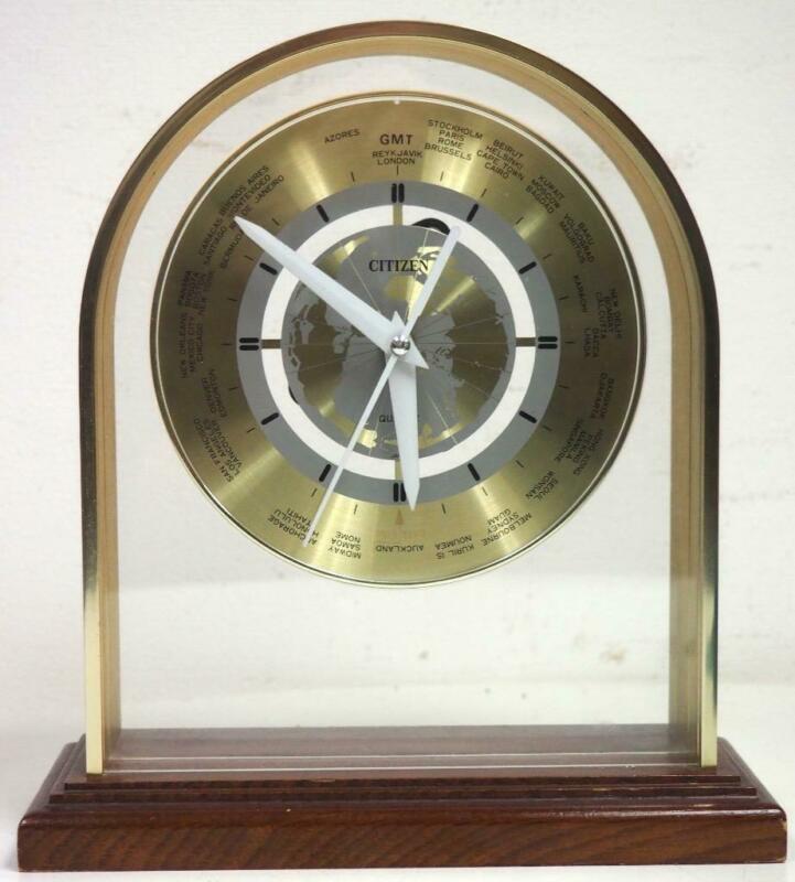 Solid Gilt Brass World Clock By Citizen Rare Brass Arched Top Mahogany Bass