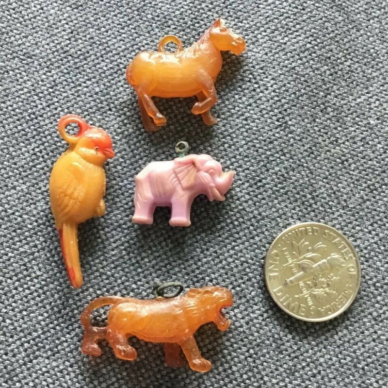 Vtg Celluloid Charms Lion Bird Elephant Horse + Cracker Jack Gumball
