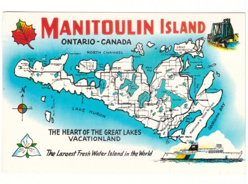 Title (ebay affiliate link): Manitoulin Island, Ontario, Map Showing Major Routes, Chrome Postcard