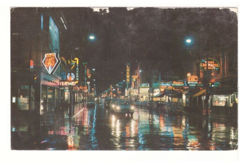 Night View, Dundas Street, London, Ontario, Vintage Chrome Postcard