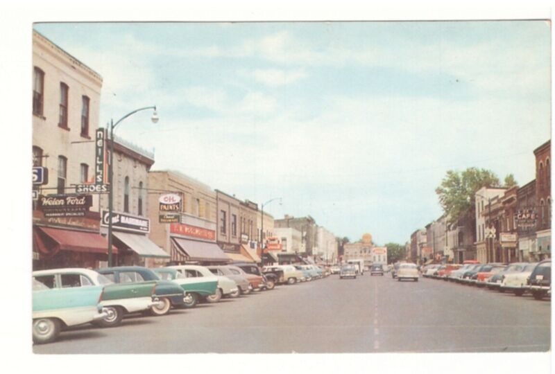 Main Street, Lindsay, Ontario, Vintage 1959 Chrome Postcard, Old Cars