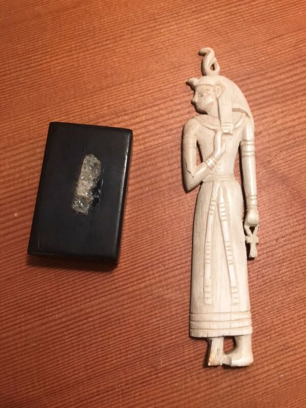 Antique Egyptian Carved PHARAOH w/wood stand AS FOUND