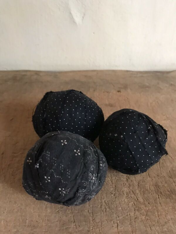 3 BEST Big Antique Handmade Rag Balls Black Calico Textile AAFA